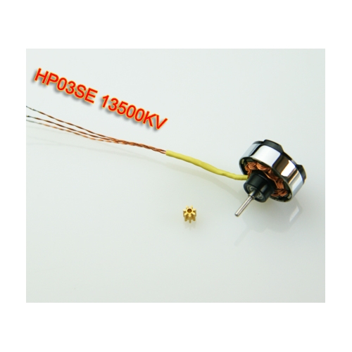 Description: KV:13500 Weight:3.2g Idle current: 0.4A/3.5V Max current: 5A(20S) Shaft diameter:1.2mm it includes one HP03SE motor and one 7T pinion gear. There are currently no product reviews.
