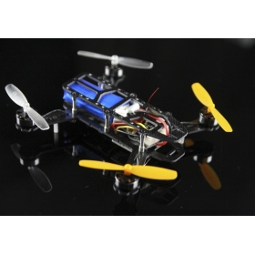 Flight weight: 61g including all the parts fully assembled, motor to motor distance is 120mm. I found out about that late last night. Now this morning I'll do my maiden-flight!! - As I am experienced in Copters and all the functions seem to work properly, this should be fun! :-) Thank You for Your support, maybe You can put this on Your site to help others, because I read a lot from other pilots having problems arming the little quad, especially with DX7...