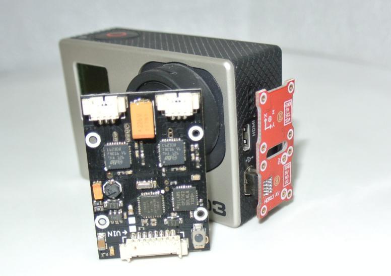 2)Installation way for Sensor and GoPro3 AV: Size comparing between MX-MiniBGC V3.1 and GoPro3