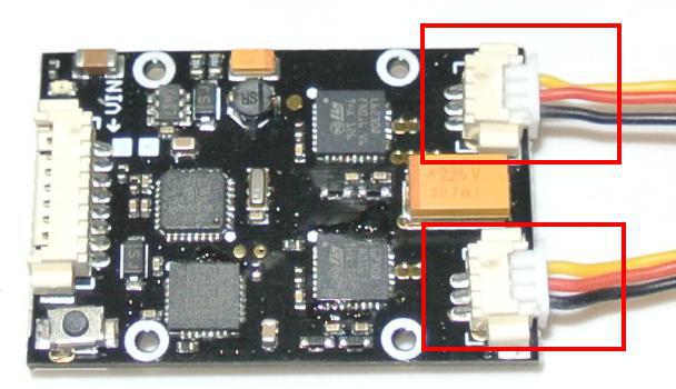 Sensor and GoPro3 AV board How to connect to motors 1) If the motor already has a 1.25mm connector, plug onto the main board directly, shows like the following picture (in the red square box)