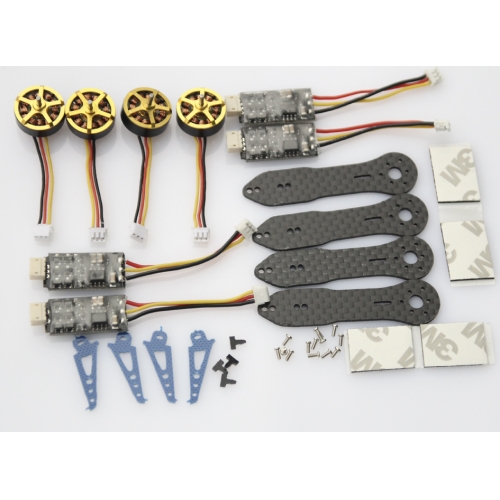 Description: It includes 4 pcs of MP05 motor, 4 pcs of MP-7A ESC , 4 pcs of carbon arm with related screws, a set of landing gear, 4 pcs of double-side 3M sticker for sticking MP-7A on the arm. This combo is specially for Hermit quadcopter upgrading, the motor will increase 25% performance on Hermit quadcopter, it works with 75mm props and 90mm props perfectly. Customers can also use the combo on other similar copters from 140mm to 180mm size. MP05 motor details: Weight: 5.4g including cables size:1304 KV: 4000 Idle current: 0.27A/7.4V 0.18A/3.7V There are currently no product reviews.