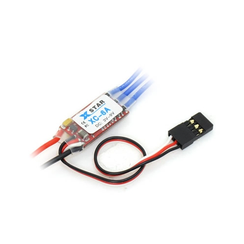 1、Features 1)、Full protection feature including low voltage, over-heat, throttle signal lost, startup 2)、Compatible with sensorless brushless motor. 3)、Excellent startup performance, great throttle linear and quick throttle response. 4)、Support highest motor speed 240,000RPM(2 poles), 80,000RPM(6 poles) and 40,000(12 poles). 5)、Easy configure with program card. 6)、System can automatically detect throttle neutral point and neutral range is adjustable. 7)、Three work mode can match different requirement. 8)、4 steps of maximum reverse force adjustment, 5steps of maximum start force adjustment. 9)、3steps of maximum brake force adjustment, 5 steps of drag brake force adjustment, 4 steps of initial brake force adjustment. 10)、Support 1 cell operation (min voltage: 3V, only available for XC-6A and XC-10A). 2、Specification · Input voltage: 3V-9V (support 1-2 lithium batteries) · Continue current: 6A · BEC output: 1A /5V (linear) · Weight: 4 g 3、Configurable Parameter With Program Card 1). OffVolt (Low voltage Protection threshold, Cutoff voltage): User can set proper cutoff voltage Note: System will detect battery cells and calculate proper threshold automatically if this setting is 00.0V, protection threshold for each Li-XX cell is 2.8V. For example: if the battery pack is 3 cells Li-xx, cutoff voltage will be: 2.8V*3=8.4V. 2).Brake Force: 50%, 75%,100%. Default is 100%. The ESC provide proportional brake function. The force when the throttle stick is pushed to the top point of the backward zone. 3).Drag Brake: 0、5%,10%,15%,20%. Default is 0. When the throttle stick is located at the neutral zone,the ESC provide a slight brake force. 4).Run Mode: One, Two, Two2. Default is Two2. One: the car can go forward only, and brake continuously if push the throttle stick to backward zone. Two: Bi-directional mode, the car go forward when the throttle stick is located at the forward zone,when the throttle stick is located at the backward zone, the car will go backward, the brake will occur when direction change. Two2: Conditional Bi-directional mode. With this option, the car go backward only when car is stop and throttle stick is pushed from neutral zone to backward zone. When car is running forward, push throttle stick to backward zone, car will keep brake until it 5).Start Force: 20%,25%,30%,35%,40%. Default is 30%. It refers to the maximum force when the 6).Timing : low, middle ,high and highest. Default is middle. Low advance timing is recommended for high inductance and low KV motors. High advance timing is recommended for low inductance and high KV motors. 7).Neutral Range: 6%,8%,10%. Default is 8%. Within this zone, the motor will be turned off. 8).Initial Brake Force: 5%,10%,20%,30%. Default is 5%. It refers to the brake force when the throttle 9).Reverse Force: 25%,50%,75%,100%. Default is 50%. It refers to the maximum force when car run in There are currently no product reviews.